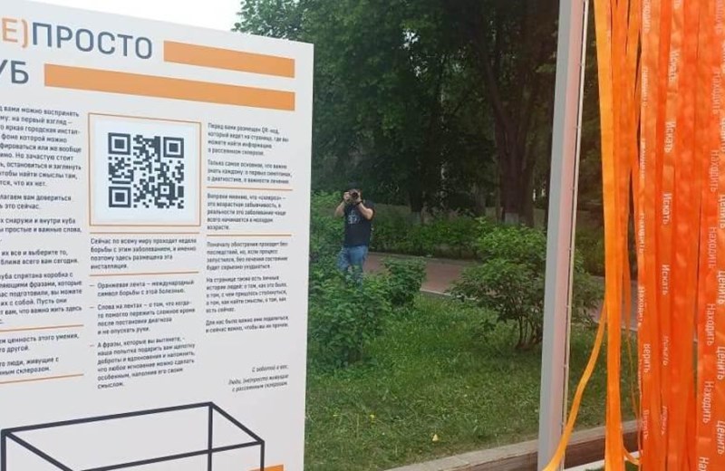 В рамках инициативы на набережной Самары был установлен (не)просто куб — трехметровая интерактивная арт-инсталляция с лентами оранжевого цвета — символом борьбы с рассеянным склерозом. На лентах внутри и снаружи куба были написаны слова, которые когда-то помогли людям пережить период постановки диагноза, обрести новые смыслы в жизни и узнать больше о том, что важно им и их близким. У посетителей была возможность зайти внутрь, сфотографироваться среди лент и узнать больше о рассеянном склерозе и его первых симптомах через личные истории людей, которым пришлось столкнуться с этим заболеванием. В них рассказывается о том, как это было, о том, с чем пришлось столкнуться, о том, как найти смыслы, о том, как есть сейчас. Прочесть их все еще можно на странице акции https://pro.oooibrs.ru/cube