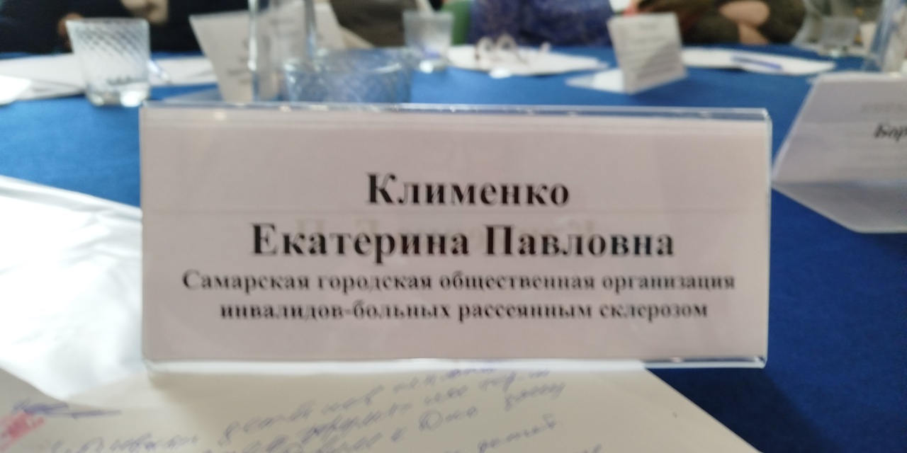 На заседании Самарскую городскую общественную организацию инвалидов-больных рассеянным склерозом представляла Екатерина Клименко.