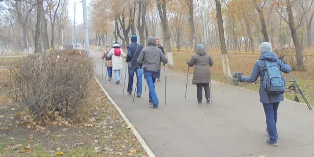 Мероприятие состоялось на территории городского парка Дружбы. Участникам проекта за счет использования при ходьбе палок "правильной высоты" и корректной техники удалось существенно увеличить нагрузку на мышцы верхней части тела: груди, плеч, спины и распределить ее равномерно по всему организму.