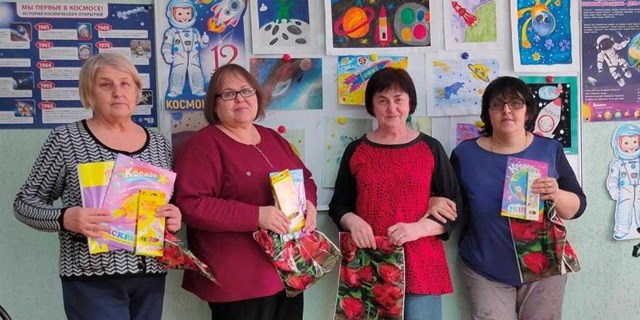 В конце мероприятия были подведены итоги объявленного конкурса детского рисунка. Здесь Центр оправдал свое название «семейный» - рисунки детей и внуков участников организации украсили сегодня стены нашего второго дома. После голосования были определены победители. Бабушки забрали для своих талантливых внуков подарки в виде карандашей, раскрасок, книжек на космическую тему, учитесь и развивайтесь дальше, наши маленькие активисты!