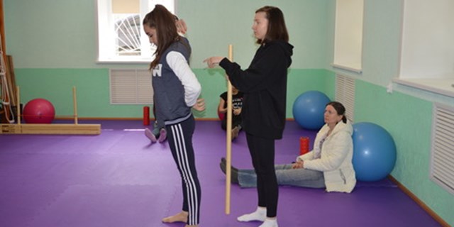 Проводят занятия в рамках проекта «Твое здоровье-в твоих руках!: Руководитель реабилитационного и социального сопровождения проекта Наталья Петровна Романчук, Организатор научного сопровождения проекта Ольга Александровна Маслова.