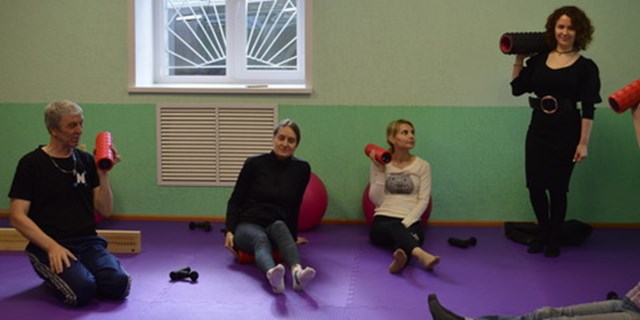 Реабилитанты, с диагнозом рассеянный склероз, ознакомились с техникой выполнения упражнений с использованием аппаратов для целевой миофасциальной стимуляции Power Plate Mini+ и Power Plate Roller.