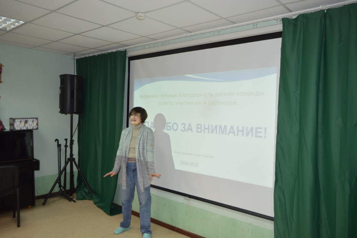 С презентацией об итогах реализации проекта выступила координатор проекта Екатерина Павловна Клименко. Координатор рассказала о работе, проведенной в рамках проекта: приобретении необходимого оборудования, консультациях врача-невролога, тестировании реабилитантов, проведенных занятиях и достигнутых результатах.