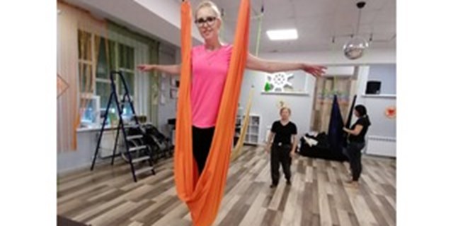 19 сентября 2022 г. главный специалист самарской региональной общественной организации инвалидов-больных рассеянным склерозом Екатерина Клименко посетила увлекательное занятие в гамаках в Студии Инклюзивного Творчества (СИТ) и отметила для себя всю пользу от выполнения комплекса упражнений.