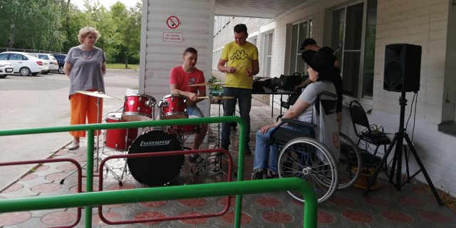 22 мая 2021 г. , в рамках "Недели РС 2021", сотрудники Самарской региональной общественной организации инвалидов «Призма», в ходе реализации проекта «Комплексная реабилитация людей с ОВЗ», победившего в конкурсе Президентских грантов, организовали выезд музыкального коллектива(гитаристы, барабанщики) в ГБУ «Самарский».