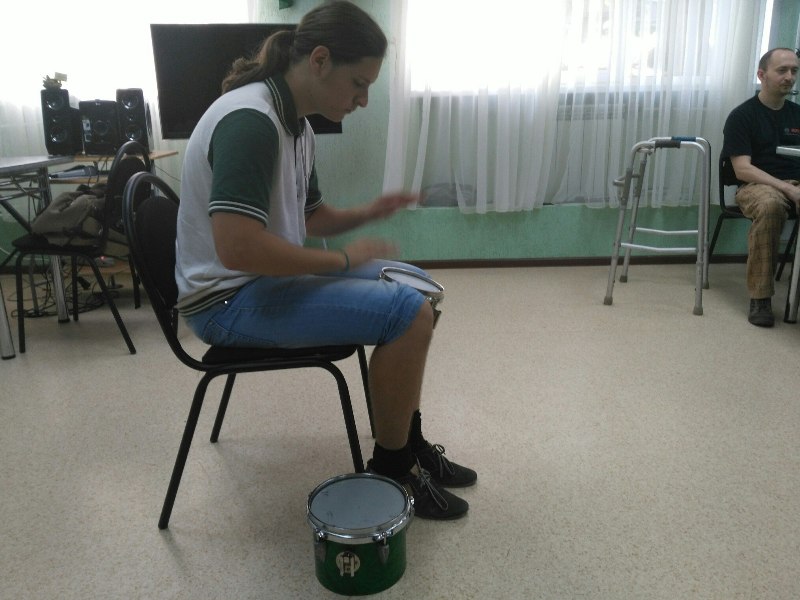 Каждый подержал барабан и палочки в руках, каждый отбил свой ритм. Пусть не правильный ритм, пусть, даже хуже, чем у глухих детей, но СВОЙ, и думается первый ритм!