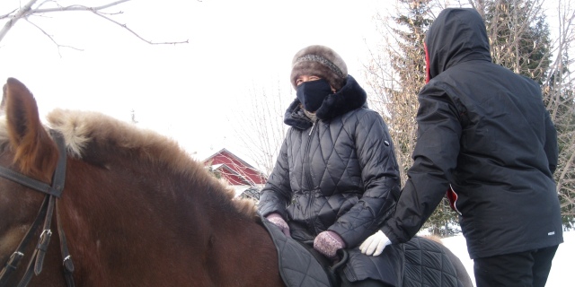 Реабилитанты так же наслаждаются чистым воздухом и видами заснеженных елей. Все это настраивает на позитивный лад. Как многие уже поняли, что езда и упражнения с использованием лошади укрепляет мышцы ног и спины, а трехмерные покачивания идущего коня дают правильные импульсы в головной мозг, что очень важно при заболевании рассеянный склероз. Температура тела лошади выше человеческой на 1,5 градуса. Движение мышц спины идущей лошади разогревают и массируют спастичные мышцы ног всадника, усиливая кровоток в конечностях.