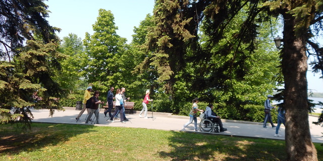 На скандинавской ходьбе реабилитанты размялись и приступили к отработке основных техник ходьбы. Во время занятия на набережной инструктор по скандинавской ходьбе проекта «Только ВПЕРЕД!» Елена Шацких провела для участников выездных занятий экскурсию, рассказала историю Самарской набережной, информацию о памятниках, находящихся на ней.