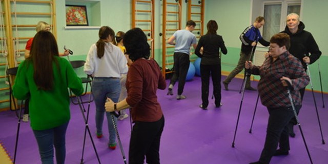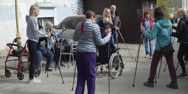 Реабилитанты тренируют ходьбу с разной интенсивностью, ходьбу с палками с горы/ в гору, созерцают прикрасы города -места семейного отдыха, прогулок, занятий спортом. Скандинавские палочки выступают в качестве реабилитационного инструмента – опоры, помогающей при передвижении людей с рассеянным склерозом.