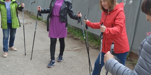 В ходе занятий участникам проекта за счет использования при ходьбе палок "правильной высоты" и корректной техники удается существенно увеличить нагрузку на мышцы верхней части тела: груди, плеч, спины и распределить ее равномерно по всему организму.